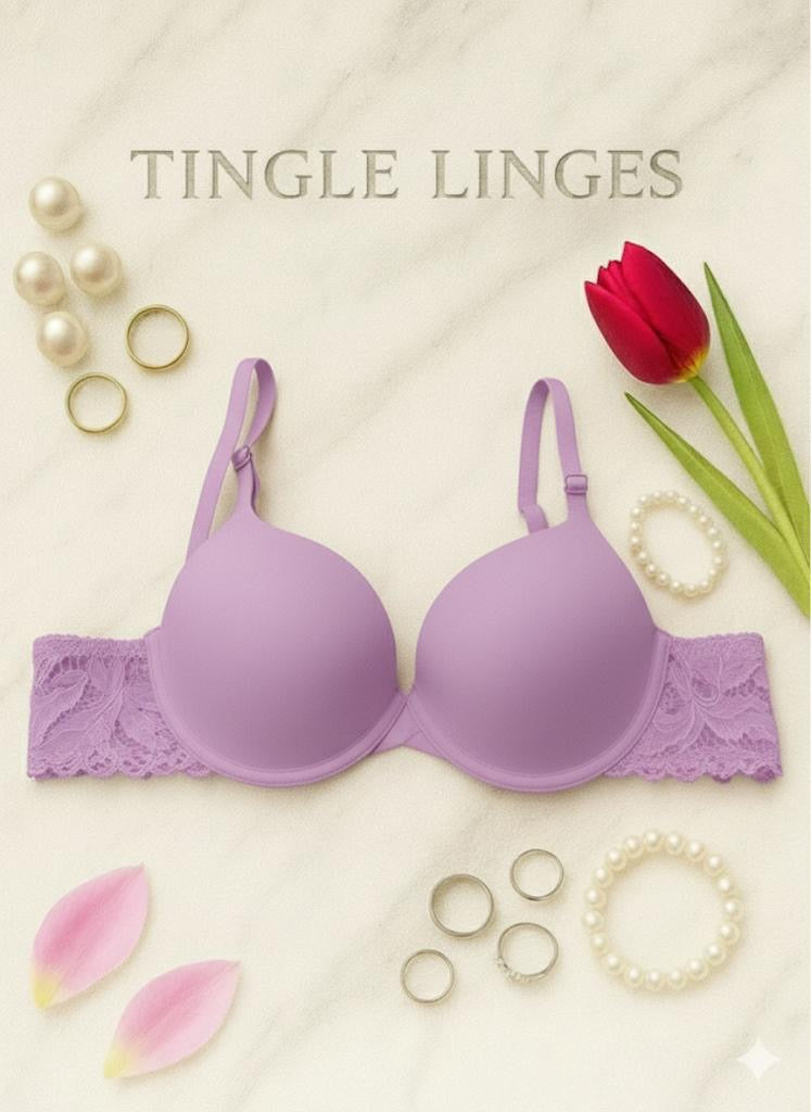 A whisper of comfort, a touch of grace, eclat seamless bra blends everyday wear ability with understated luxury.The smooth molded cups offer a naturally lifted silhouette, while the delicate lace wings trace your curves with soft femininity. Designed to disappear under clothes, it’s your secret to effortless elegance.