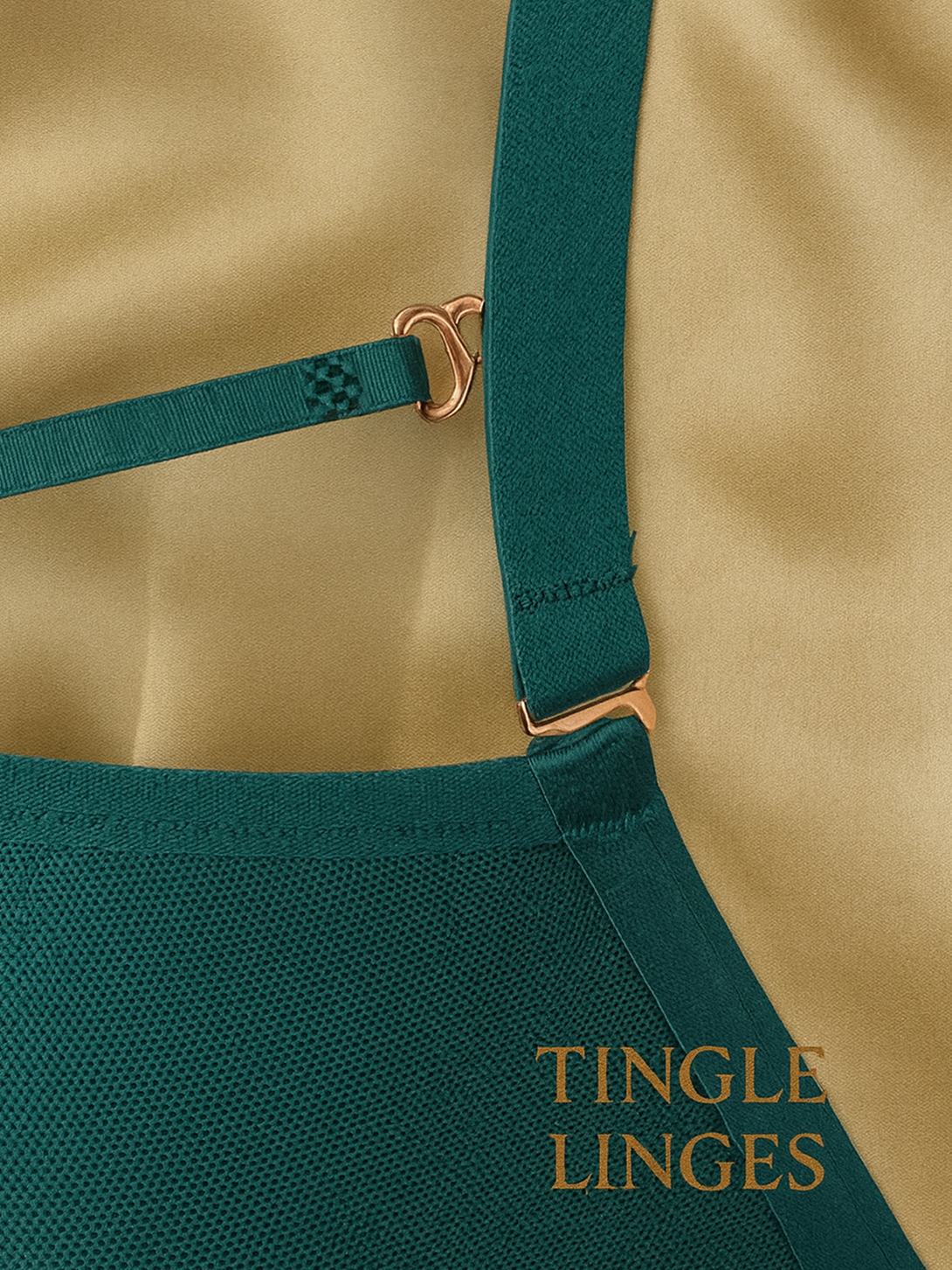 - Adjustable satin straps with gold tone hardware