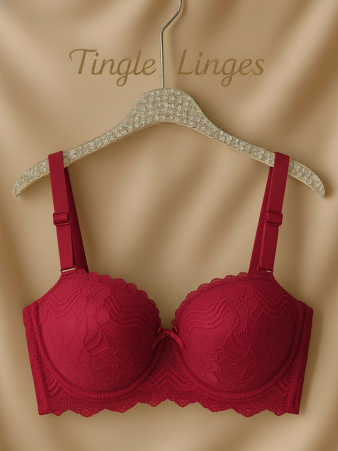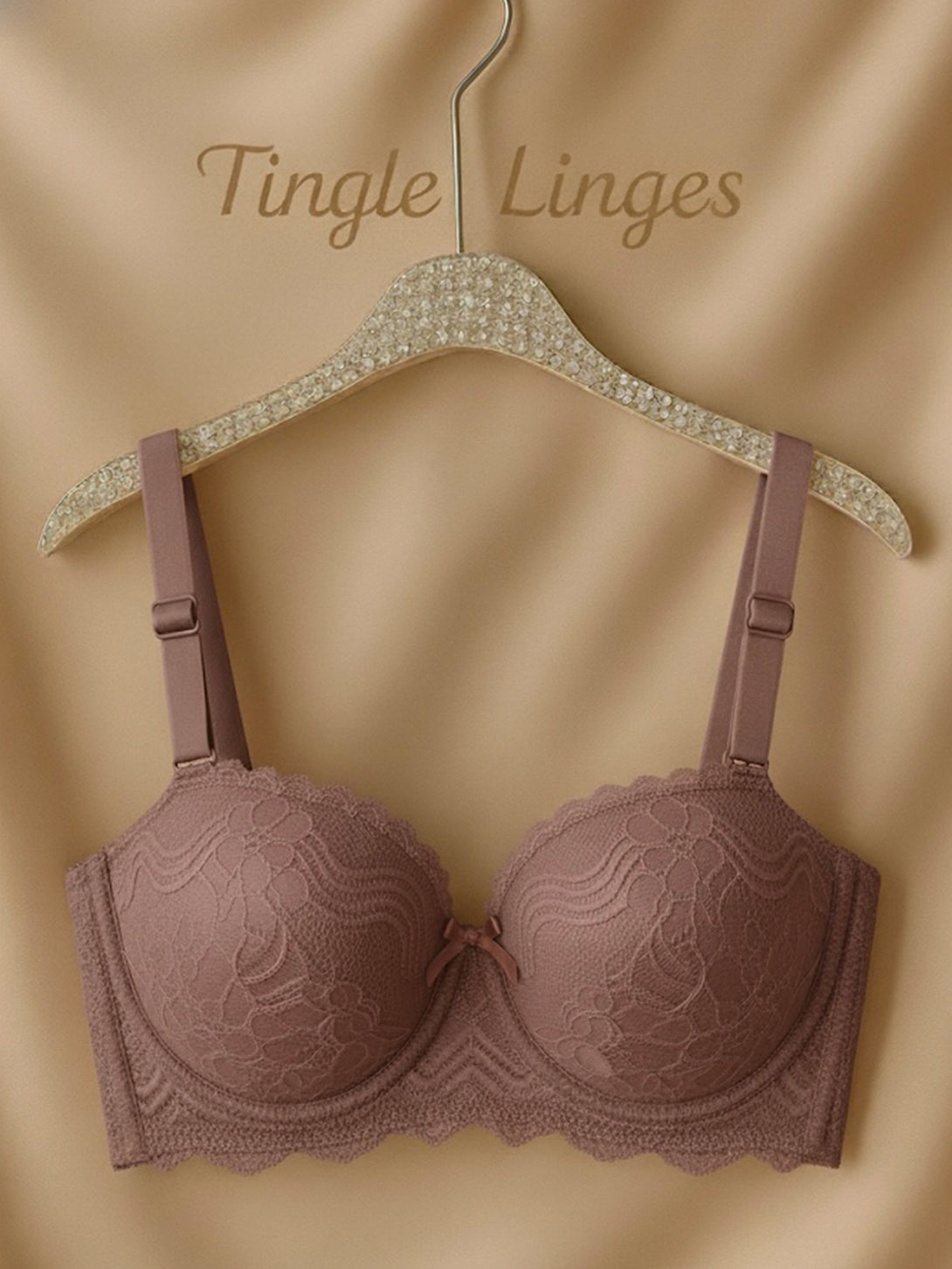Indulge in understated elegance with Tingle Linges’ Lace Muse where romantic lace meets cloud-soft comfort. Crafted from ultra-fine floral lace with sheen's touch, layered over smooth contour cups, this balconette sculpts gently while keeping a naturally lifted shape. The scalloped lace edge traces your curves, finished with a satin bow accent at the center for that quiet touch of allure. The colors flatters every skin shade, balancing warmth and sophistication. Inside, the buttery-soft lining and flexible under band offer day to night comfort without compromising on luxury.