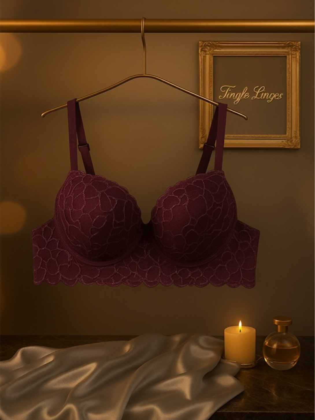 Indulge in the deep allure of lustre luxe a richly hued lace sculpted bra that blends sensual charm with gentle support. Crafted to make every moment feel effortlessly elegant, it envelops you in soft comfort while highlighting your natural curves with refined detail and poise.
