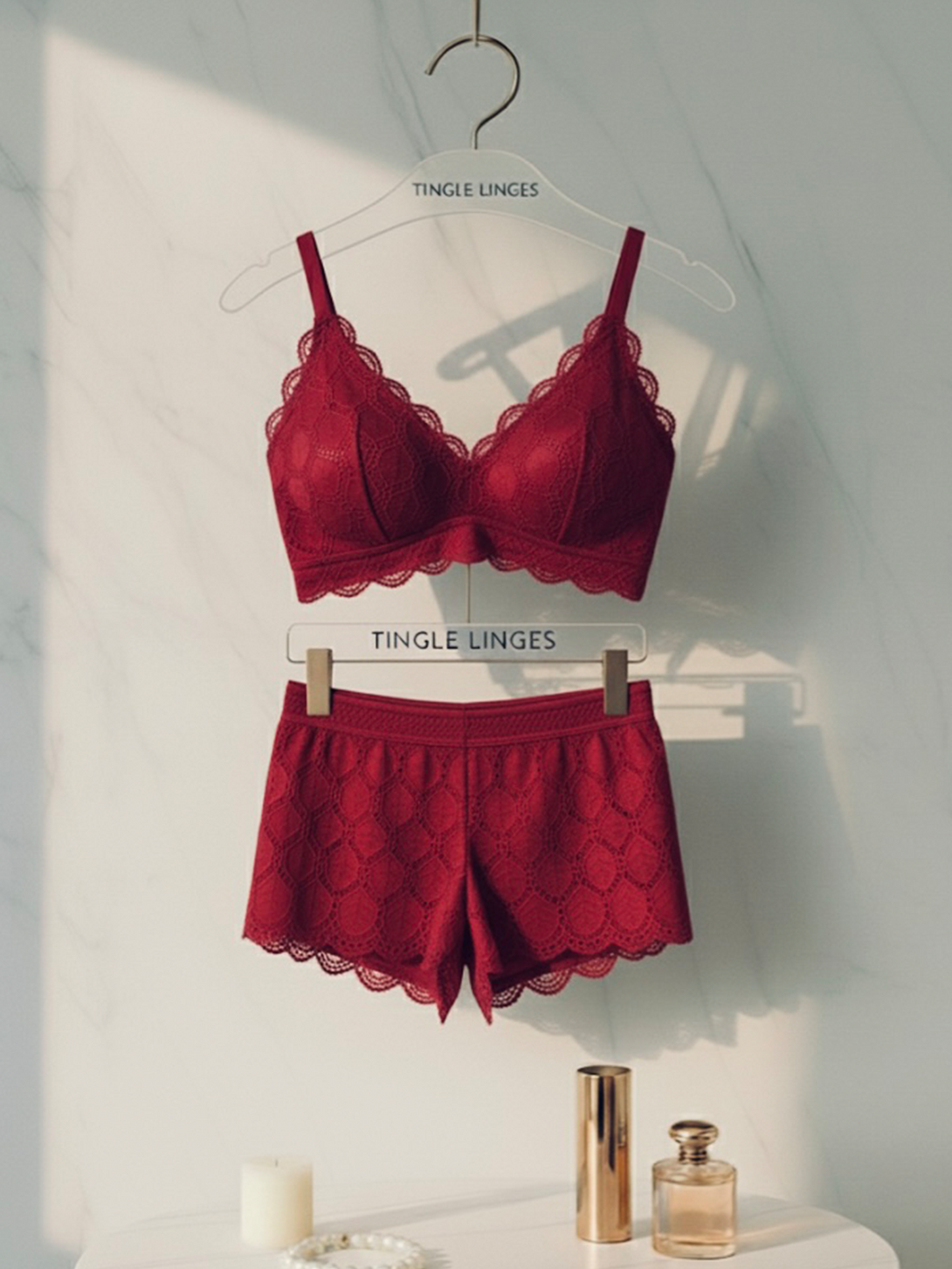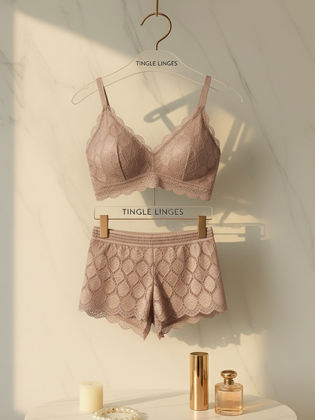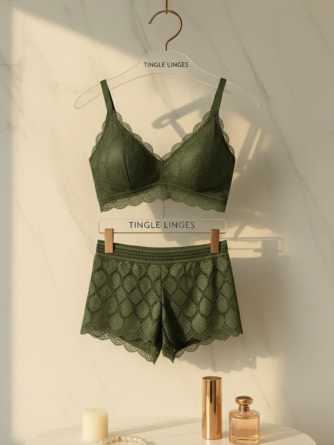 A soft embrace of elegance and comfort in this tingle linges petal kiss set in seven colors is designed to make every moment feel effortlessly beautiful. Crafted from premium stretch lace, it offers a delicate balance between allure and ease, perfect for lounging or layering.