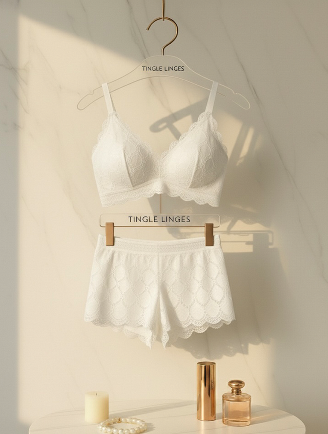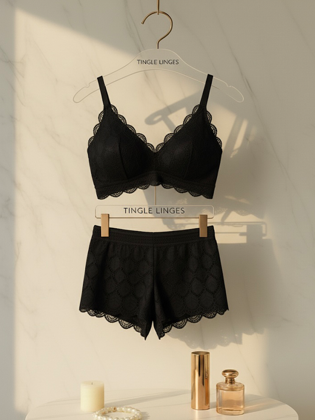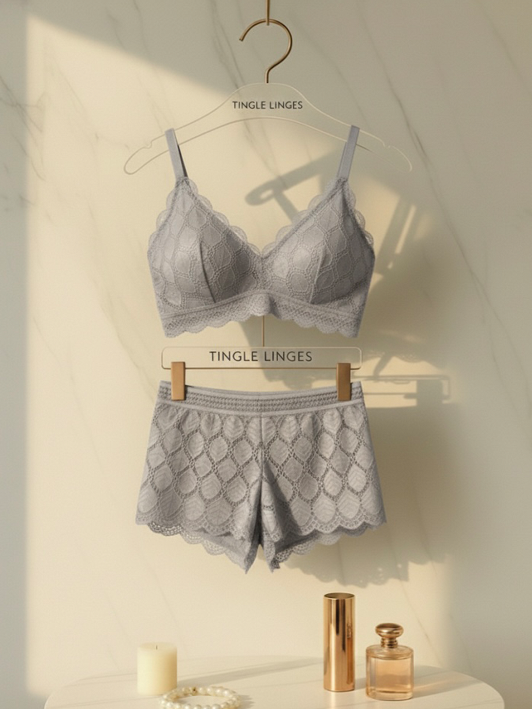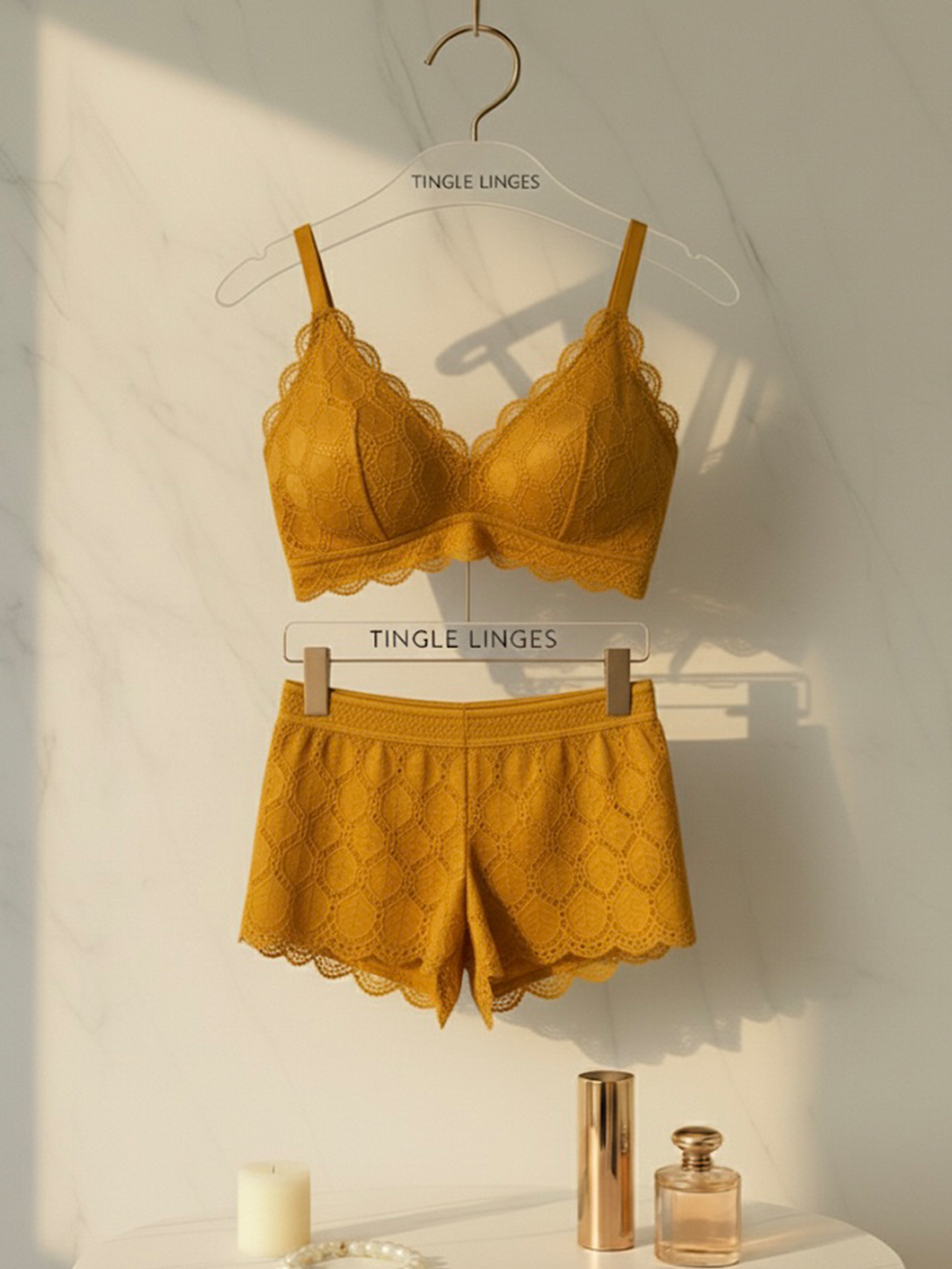 A soft embrace of elegance and comfort in this tingle linges petal kiss set in seven colors is designed to make every moment feel effortlessly beautiful. Crafted from premium stretch lace, it offers a delicate balance between allure and ease, perfect for lounging or layering.
