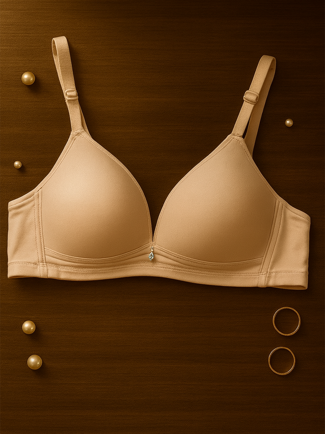 Experience pure comfort with Tingle Linges’ Serenade bra crafted to feel like second skin. Designed in a smooth, breathable fabric with light padding for gentle support and a naturally contoured shape. The tones blends effortlessly under any outfit, making it your go to essential for all day wear.